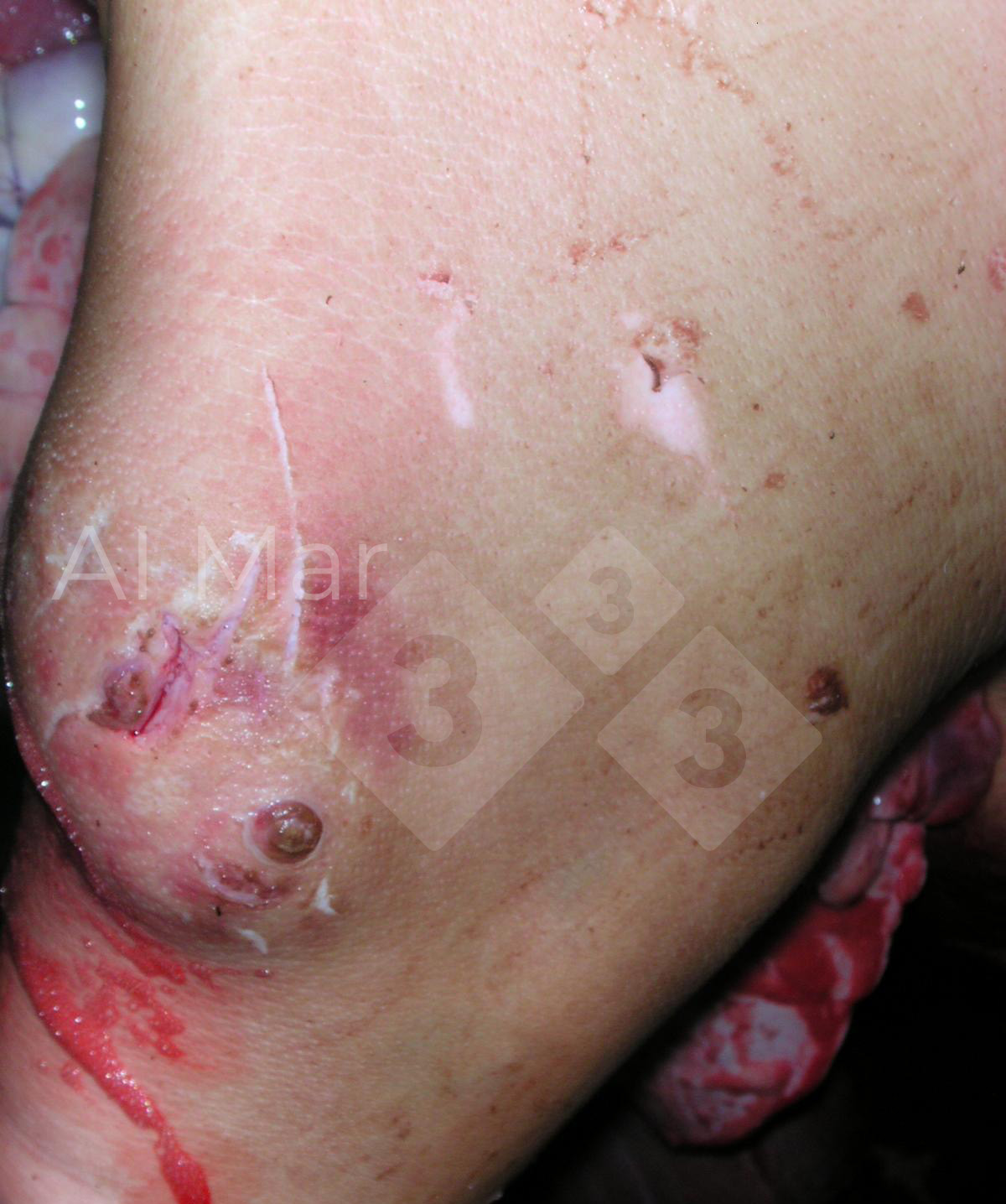 L'agente patogeno più comune in questo tipo di lesione è il Mycoplasma hyosynoviae, tuttavia, si possono trovare opportunisti come gli streptococchi, staphylococchi, colibacilli ...