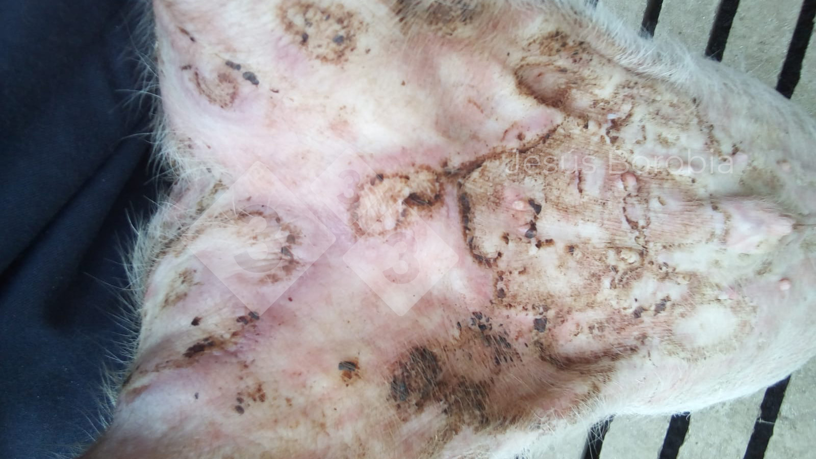 Si tratta di pitiriasi rosea, una condizione sporadica osservata nei giovani suini di età compresa tra 3 e 16 settimane. La causa è sconosciuta ma si ritiene che potrebbe essere ereditaria. Le lesioni guariscono in circa quattro settimane senza intervento. La pitiriasi rosea non richiede alcun tipo di trattamento. La condizione non è pruriginosa e non sembra avere effetti sulla salute o sulla crescita dei suini colpiti.
