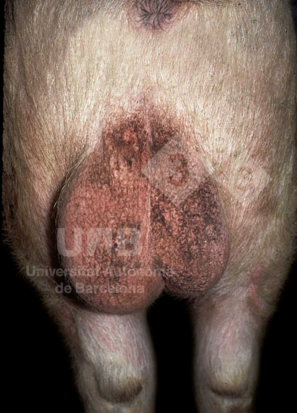 L'infezione da Rubulavirus è responsabile della malattia dell'"occhio blu". Il virus causa opacità corneale nei suini infetti; i suinetti presentano sintomi nervosi e le scrofe perdite riproduttive. Nei verri il virus determina orchite unilaterale, epididimite e atrofia testicolare.