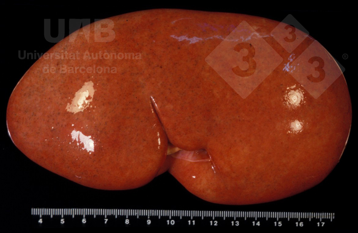 I punti rossastri multifocali che si osservano sulla superficie renale corrispondono ad una infiammazione glomerulare acuta. La PDNS è correlata con la deposizione di immunocomplessi nei glomeruli ed è associata ad una infezione da circovirus suino tipo 2.