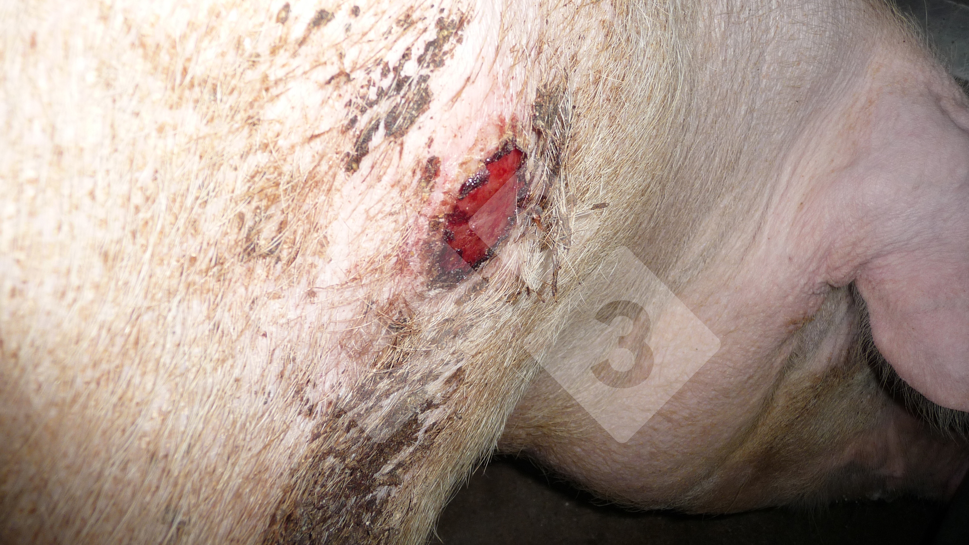 Le ulcere alle spalle delle scrofe non sono un evento frequente, ma possono comparire di tanto in tanto. La fase più propizia sono le 2 prime settimane di sala parto. Le ulcere possono essere ristrette in piccole zone arrossate sulla pelle fino a ferite da 10 cm di diametro. Ci sono alcuni fattori coinvolti, ma i principali sono: stato corporale della scrofa e lunghi periodi di appoggio su pavimentazione solida durante la lattazione.