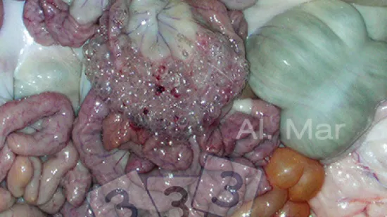 Le vesciche osservate in questo enfisema intestinale sono ripiene di: