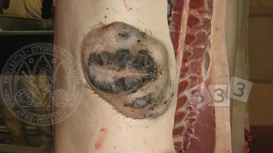 Qual è la causa più probabile di questa lesione?