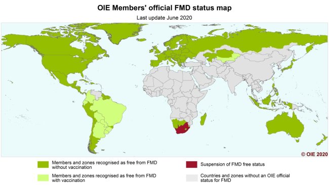 I paesi raggiungono il nuovo status di malattia per la peste suina classica e l'afta epizootica, dichiarata dall'OIE...