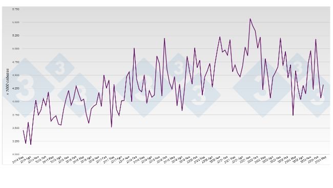 Mercoledì 17 luglio 2024/ Redazione 333 a partire da dati del Report Trimestrale de Indicadores de Porcino, Subdirección General de Producciones Ganaderas y Cinegéticas, Dirección General de Producciones y Mercados Agrarios, Ministerio de Agricultura, Pesca y Alimentación, Luglio 2024.